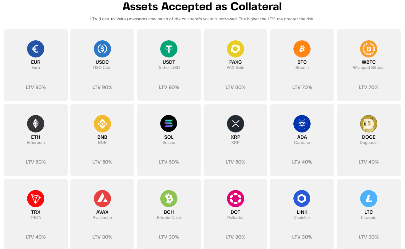 This gives you full control over when and how you repay, which helps you manage LTV and reduce liquidation risk more effectively than fixed-term loans.